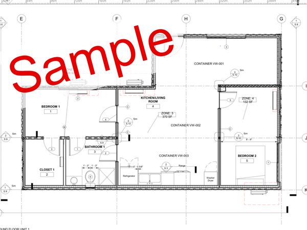 2 bed 1 Bath, 3-40ft containers make the “Tres” floor plan. Wet stamped by our Engineer and labels changed for your specific location.